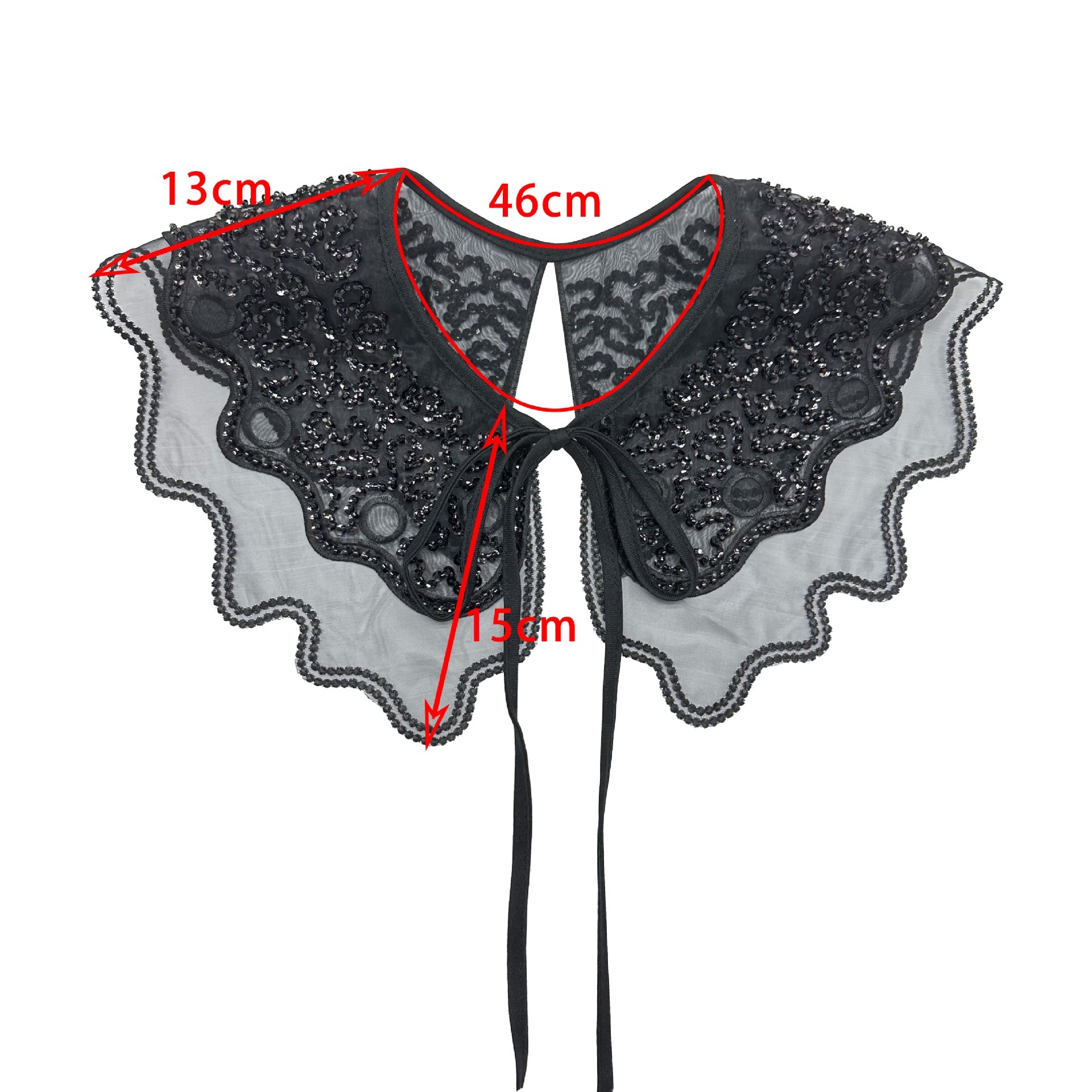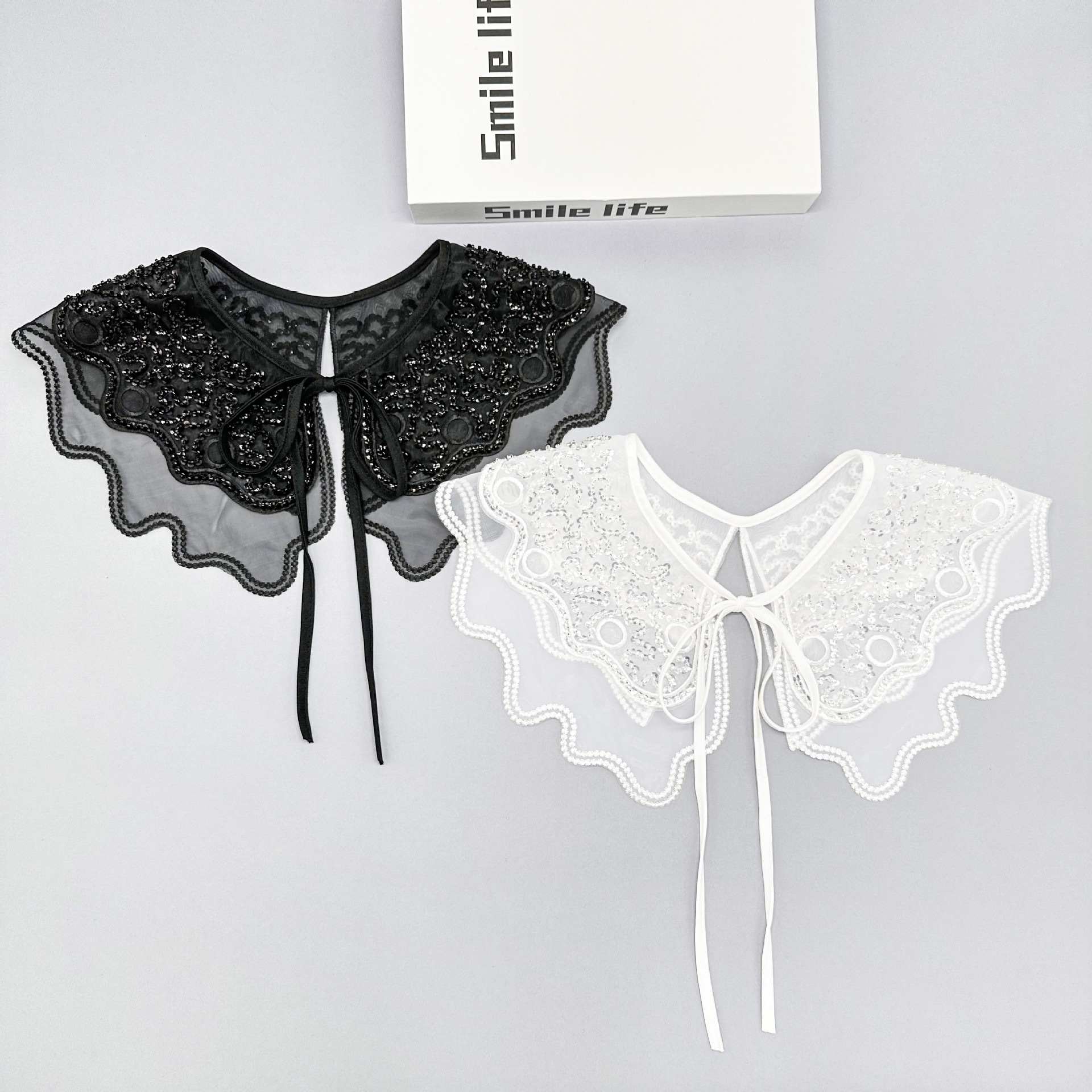 黑白色雙層蕾絲釘珠假領子裝飾衣領/圓領毛衣連衣裙上衣搭配領子